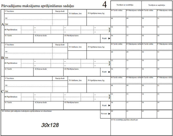 29.3. samaksas pamatojumus katram norādītajam pārvadātājam – maksātāja kodu, līguma noslēgšanas datumu un numuru vai citu informāciju, kas paredzēta šajā līgumā norādīšanai pavadzīmē.
