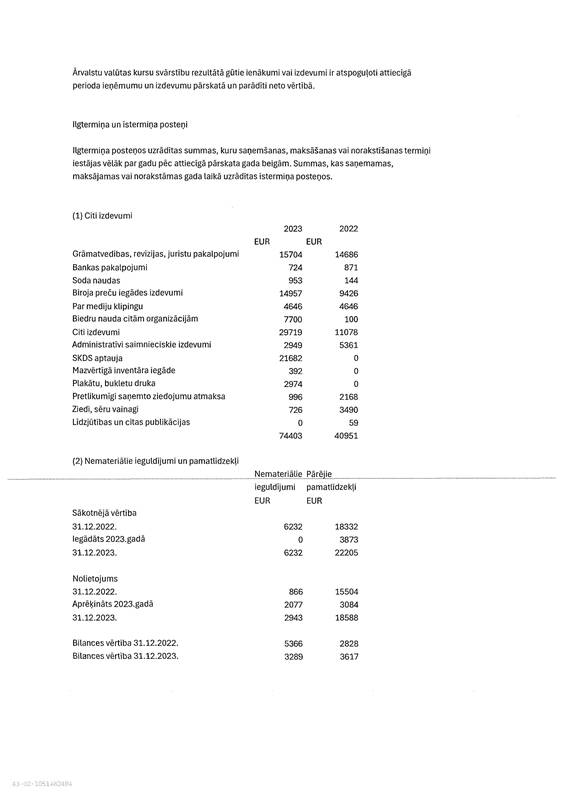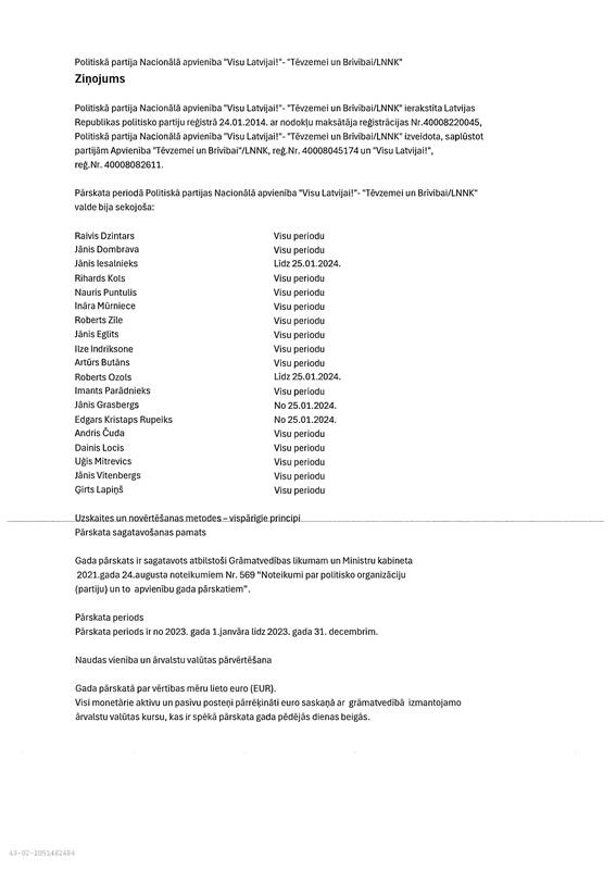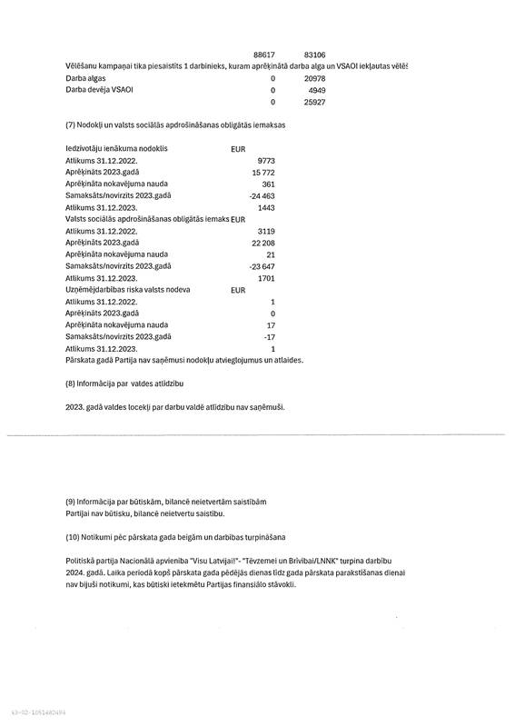 Politiskās partijas "Nacionālā apvienība "Visu Latvijai!"-"Tēvzemei un Brīvībai/LNNK"", reģ. Nr. 40008220045, gada pārskats par 2023. gadu, EUR
