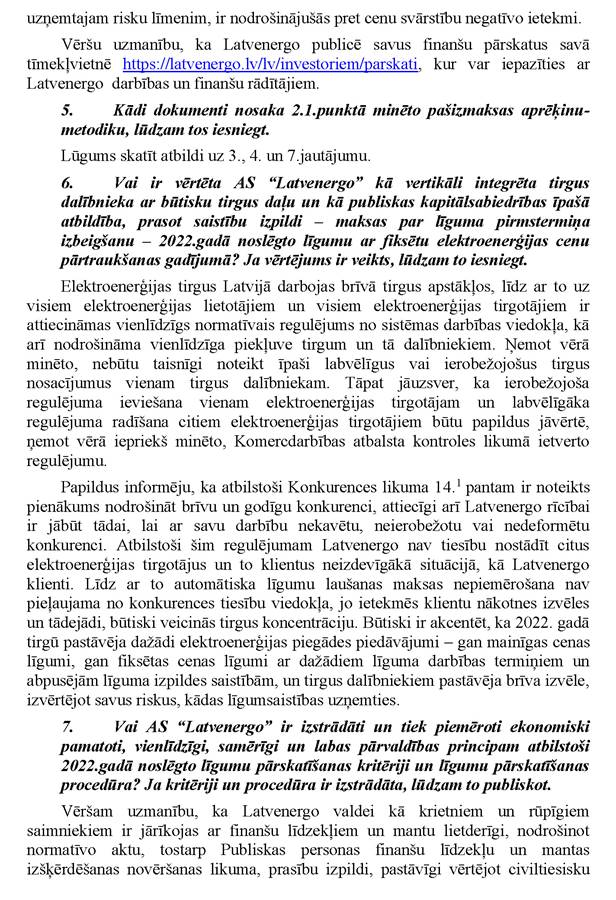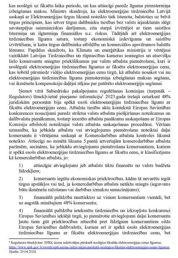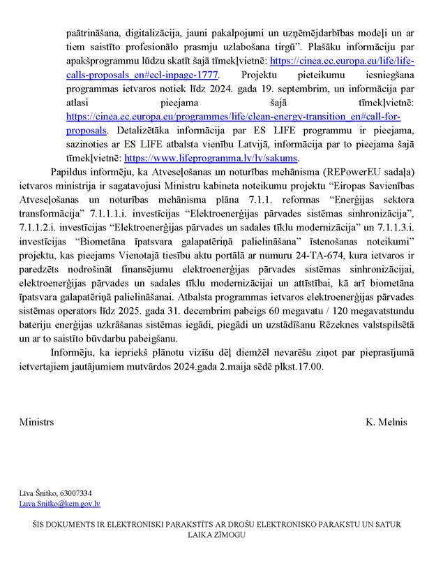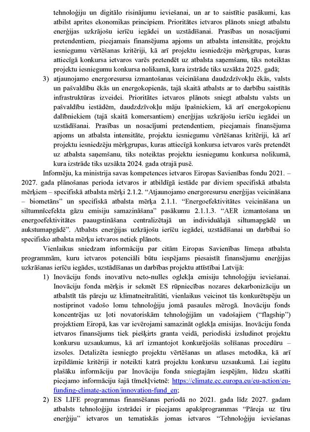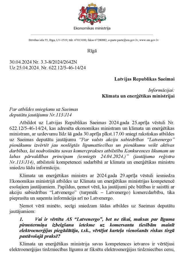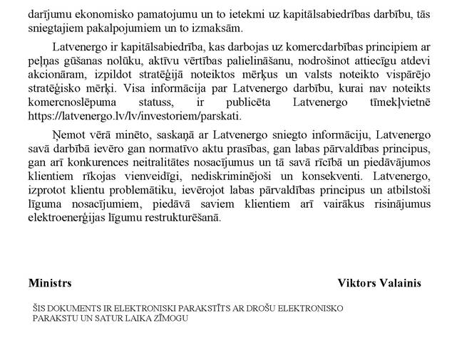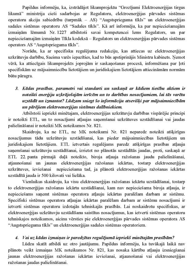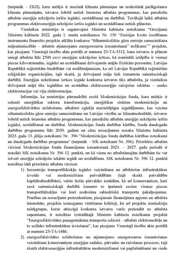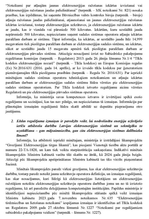 Vai ministres kundze vēlas sniegt informāciju papildus jau rakstiski sniegtajai atbildei? Nē.