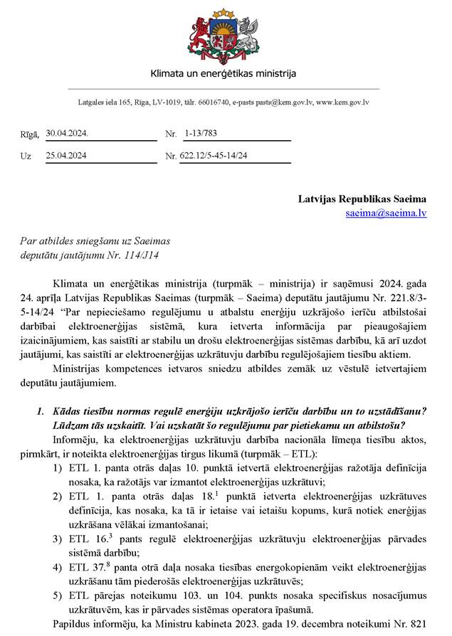 Atbilžu sniegšana uz deputātu jautājumiem 2024. gada 2. maijā
