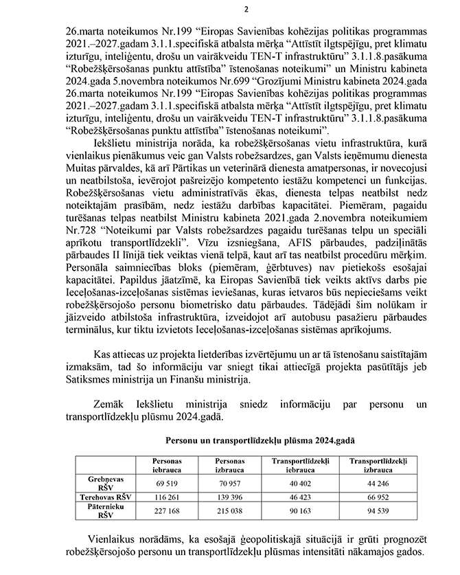 Deputātu Jāņa Dombravas, Edvīna Šnores, Artūra Butāna, Jāņa Grasberga un Ilzes Indriksones jautājums iekšlietu ministram Rihardam Kozlovskim "Par robežpunktu "Grebņeva", "Terehova" un "Pāternieki" modernizācijas projekta realizāciju". Saņemtā rakstveida atbilde iesniedzējus neapmierina, bet mutvārdos papildjautājumus uzdot nevēlas.