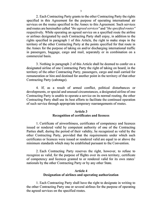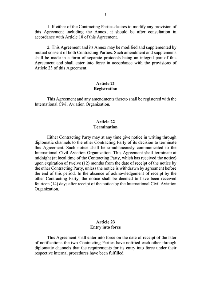 3. pants. Nolīgums stājas spēkā tā 23. pantā noteiktajā laikā un kārtībā, un Ārlietu ministrija par to paziņo oficiālajā izdevumā "Latvijas Vēstnesis". Līdz ar likumu izsludināms nolīgums latviešu un angļu valodā.