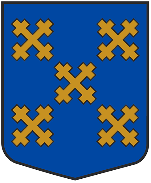 2. Viesatu pagasta ģerbonis (Zilā laukā zelta krustu šķērskrusti (2/1/2).) – reģistrēts 2025. gada 10. jūnijā.