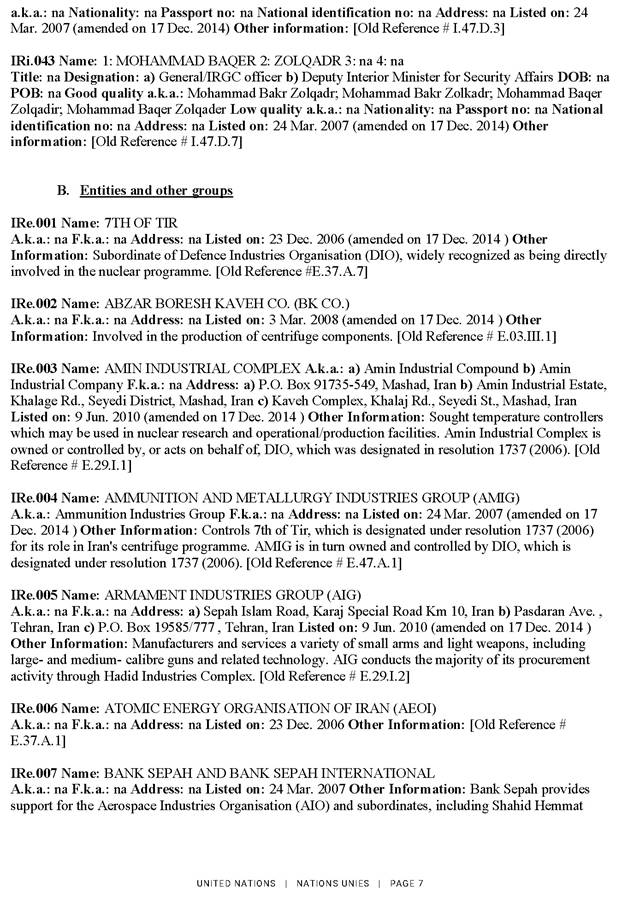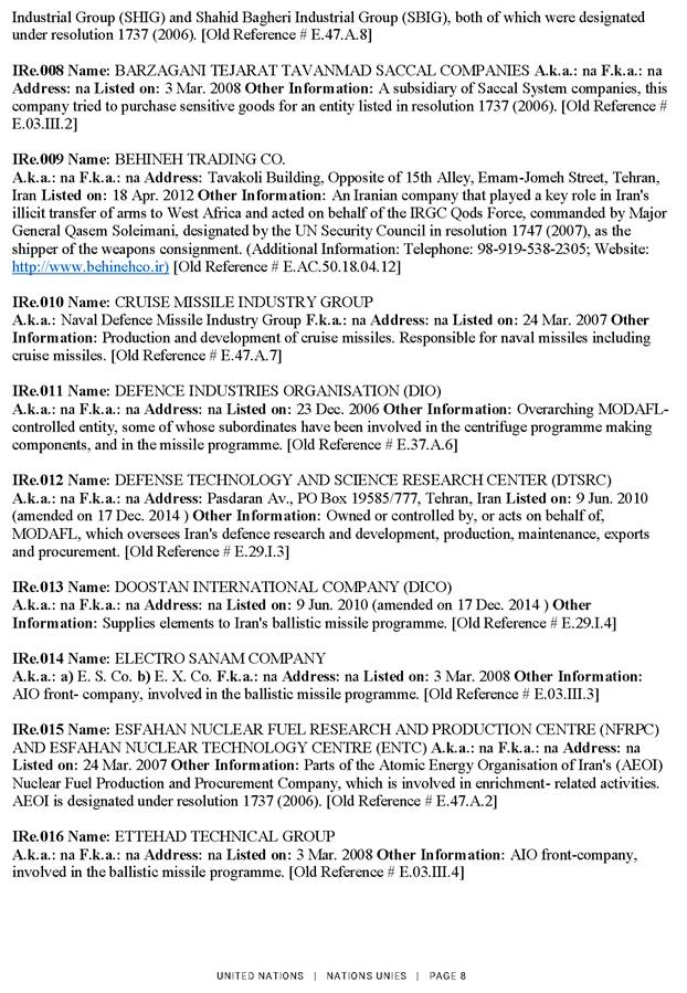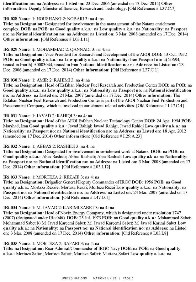 2025. gada 27. septembrī ANO Drošības padome saskaņā ar rezolūcijas Nr. 2231 (2015) 11. un 12. punktā noteikto atkārtoti piemēro visas rezolūciju Nr. 1696 (2006), Nr. 1737 (2006), Nr. 1747 (2007), Nr. 1803 (2008), Nr. 1835 (2008) un Nr. 1929 (2010) noteikumus tādā pašā apmērā, kādā tās bija spēkā pirms rezolūcijas Nr. 2231 (2015) pieņemšanas. Attiecīgi ANO Drošības padome saskaņā ar rezolūciju Nr. 1737 (2006) atkārtoti piemēroja sankcijas pret 43 fiziskām un 78 juridiskām personām. Lūgums skatīt ANO notu un skaidrojošo informāciju pielikumā.