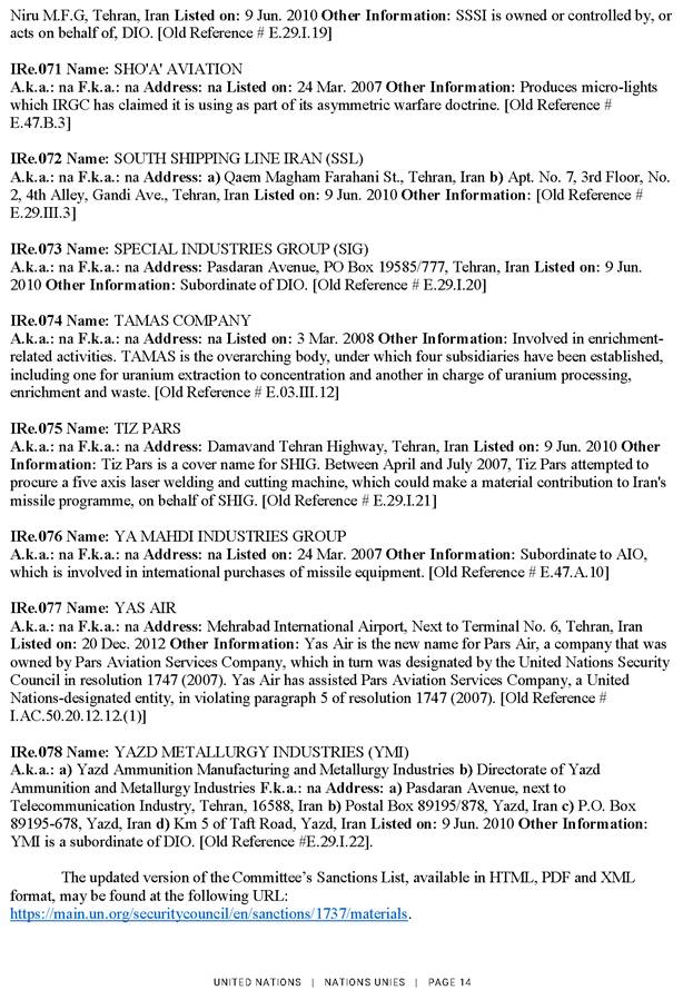 sarakstā ar Rezolūciju 1747 (2007). Yas Air ir palīdzējis Pars Aviation