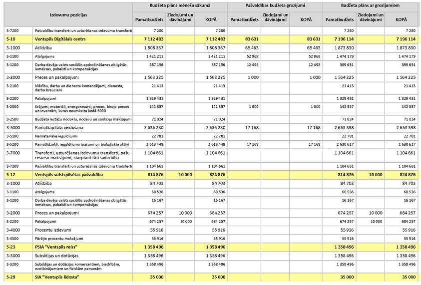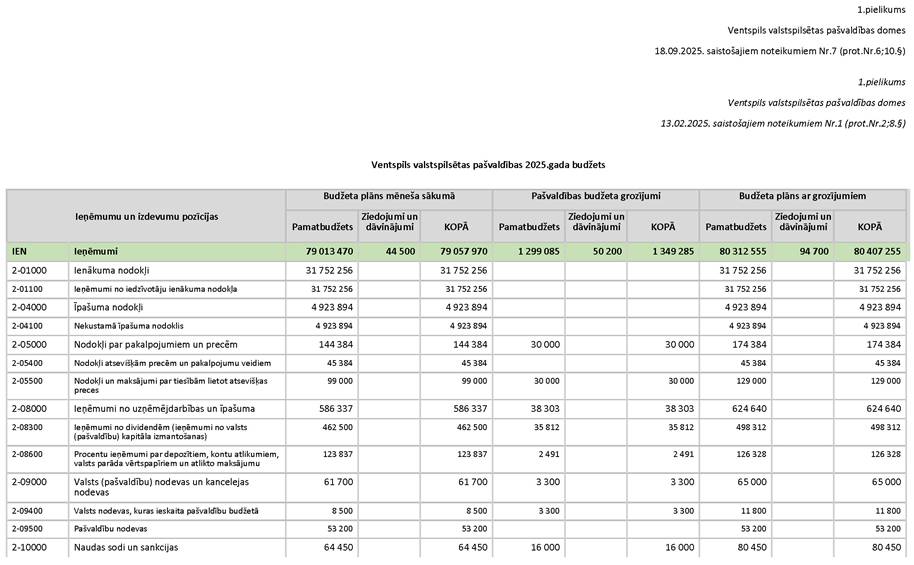 Grozījumi Ventspils valstspilsētas pašvaldības domes 2025. gada 13. februāra saistošajos noteikumos Nr. 1 "Par Ventspils valstspilsētas pašvaldības 2025. gada budžetu"
