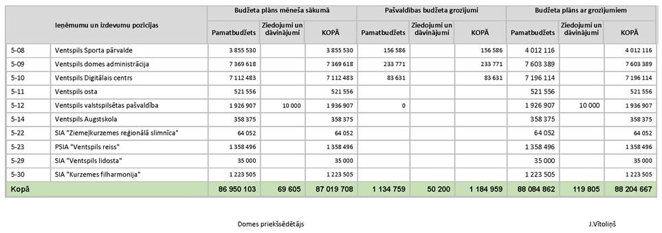 Pamatojoties uz Ventspils valstspilsētas pašvaldības (turpmāk – Pašvaldība) 2025. gada gaidāmo budžeta izpildi un Pašvaldības struktūrvienību īstenotajiem projektiem un pasākumiem, ir apkopoti 2025. gada budžeta grozījumu priekšlikumi.