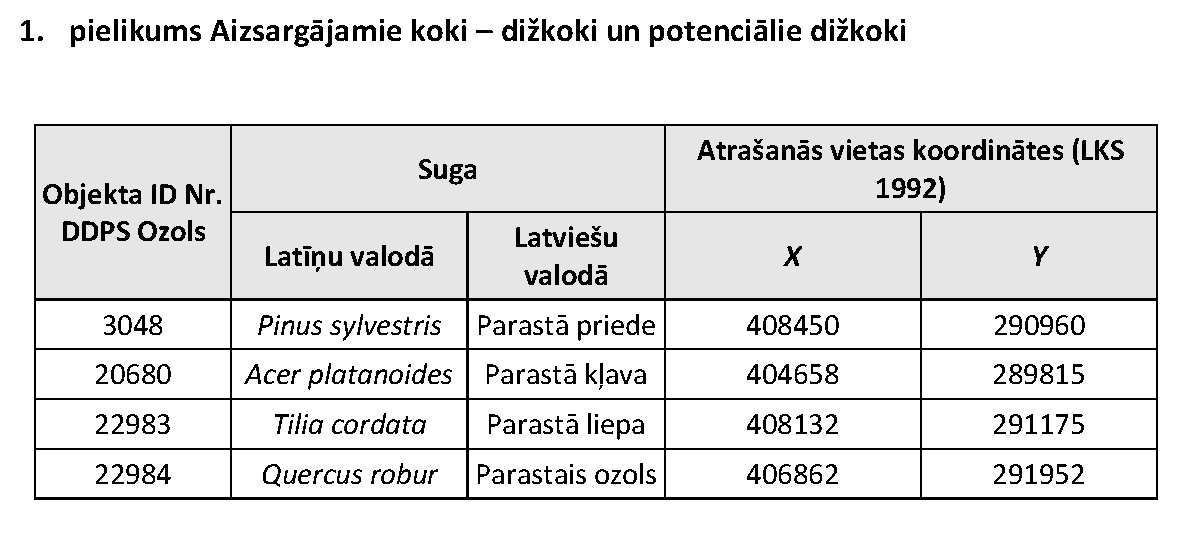 16. Lai nodrošinātu teritorijā konstatēto dabas vērtību aizsardzību, atsevišķu vēja elektrostaciju izbūves laukumu un pievedceļu detalizētas projektēšanas un būvniecības laikā (tai skaitā plānojot materiālu novietnes un tehnikas pārvietošanos), ņem vērā aizsargājamo koku–dižkoka un potenciālo dižkoku izvietojumu saskaņā ar 1. pielikumu.