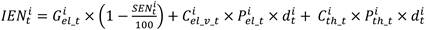 – jaudas maksa elektroenerģijas ražotājiem, kas noteikta atbilstoši uzstādītajai elektroenerģijas ražošanas jaudai un saskaņā ar Sabiedrisko pakalpojumu regulēšanas komisijas noteikto tarifu, kalendāra gada t kalendāra mēnesī i (euro). Nākotnes periodu aprēķiniem jaudas maksas apmēru pieņem tādu, kāds tas ir bijis pēdējā pilnā kalendāra gadā;