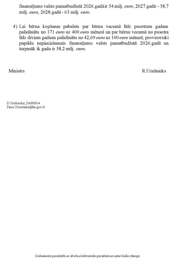 Otra lieta. Mani mazliet biedēja arī tas, ka šajā paziņojumā... vai paziņojuma projektā diemžēl bija pazaudētas ārkārtīgi būtiskas lietas. Bija pazaudēts atbalsts Ukrainai. Cik ilgi tas būs? Bija pazaudēta ļoti būtiska valoda par Ukrainas atbalstu līdz taisnīga un ilgtspējīga miera panākšanai. Es lepojos, ka tas bija mans priekšlikums, kuru atbalstīja arī kolēģi no citām partijām. Šo paziņojumu mēs pieņēmām Eiropas lietu komisijā vienlaicīgi un vienbalsīgi, pie tā ļoti rūpīgi strādājot un neļaujot tā valodai kļūt mazsvarīgākai un dažādi interpretējamai. Tā ir viena lieta.