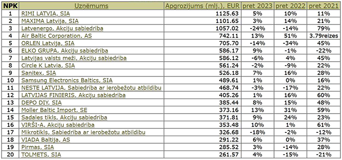 1. attēls. Uzņēmumi ar lielāko gada apgrozījumu 2024. gadā