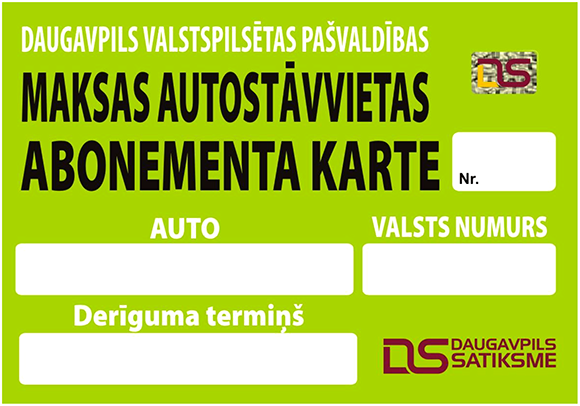 2.6. abonementa karte – dokuments, ko maksas autostāvvietu pārvaldnieks izsniedz maksas autostāvvietas lietotājam, kurš ir samaksājis avansā par maksas autostāvvietu lietošanu laika posmā no mēneša līdz gadam;