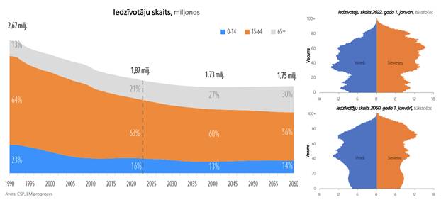 [9] Izmaiņas demogrāfijas rādītāju prognozēs liecina par strauju kopējā iedzīvotāju skaita samazināšanos ilgtermiņā uz jaunākās vecuma grupas iedzīvotāju rēķina4 (skt. 1. attēlu). Paredzams, ka samazinoties jauniešu īpatsvaram, samazināsies kopējais vietējās izcelsmes studējošo skaits, tajā skaitā medicīnas jomā. Tā pat paredzams, ka palielinoties vecākā gada gājuma iedzīvotāju īpatsvaram, pieaugs nepieciešamība pēc vispārējās medicīniskās aprūpes pakalpojumiem tuvāk iedzīvotāju dzīvesvietai, tādējādi radot nepieciešamību pēc vēl mērķtiecīgākas jauno speciālistu plānošanas. Palielināsies pieprasījums pēc plašas kompetences speciālistiem (ģimenes ārsts, internists), kā arī specialitātēm, kas saistītas ar vecuma ietekmi uz pacienta veselību (geriatrs, paliatīvās aprūpes ārsts u.c.). Atsakoties no atstrādes normas, alternatīviem risinājumiem ir jāspēj garantēt pietiekamu personāla nodrošinājumu veselības apmaksātu aprūpes pakalpojumu sniegšanai, īpaši publiskajā veselības aprūpes sektorā valsts kapitālsabiedrībām izvirzīto vispārējo stratēģisko mērķu sasniegšanai.