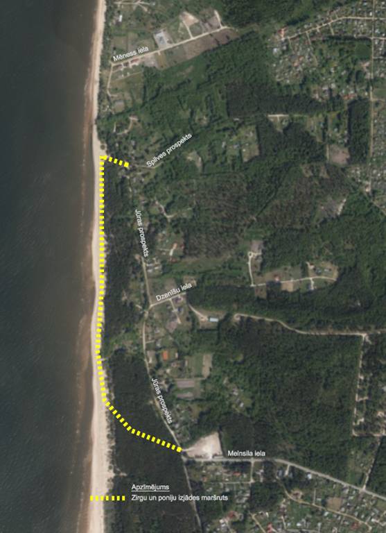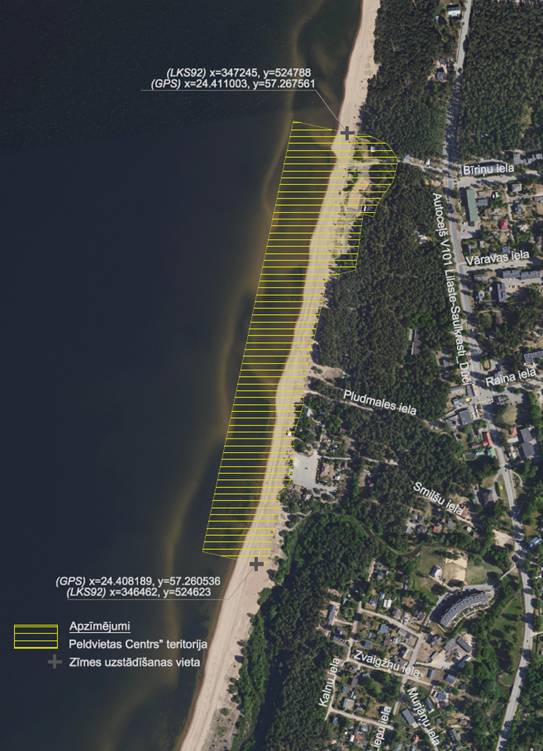 paredzot, ka peldvietas "Centrs" un nūdistu pludmales robežas un
