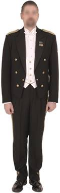 2.5.13. žakete un bikses (ar apdares lentēm zelta krāsā) melnā krāsā (17. attēls);