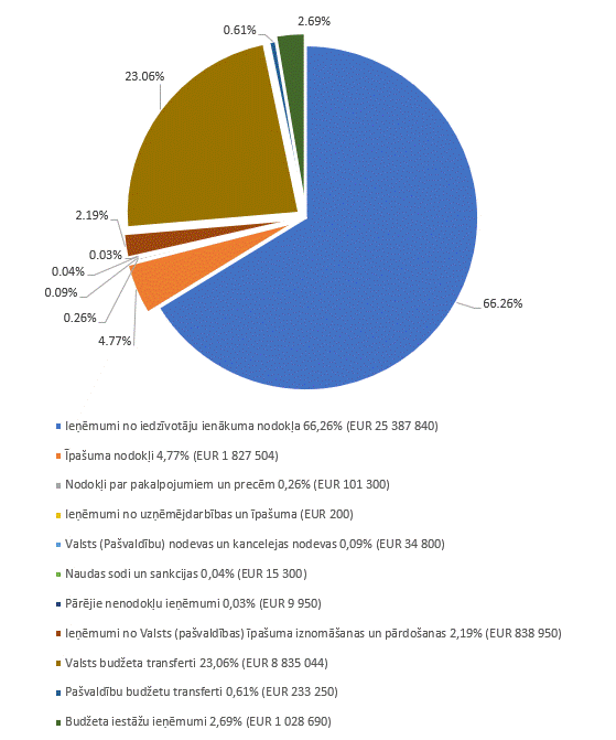 Budžeta izdevumu kopējais apjoms 2025. gadam plānots EUR 40 621 797 apmērā, kuri tiek segti no pamatbudžeta ieņēmumiem – EUR 38 312 828, 2024. gada naudas atlikuma – EUR 3 746 982 un aizņēmumiem Valsts kasē.