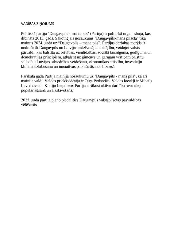 Politiskās partijas "Daugavpils - mana pils", reģ. Nr. 50008206931, 2024. gada pārskats, EUR