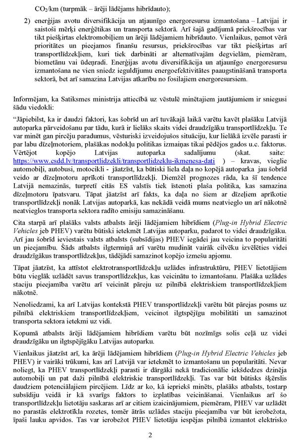 Deputātu Amila Saļimova, Iļjas Ivanova, Nataļjas Marčenko-Jodko, Igora Judina un Jefimija Klementjeva jautājums klimata un enerģētikas ministram Kasparam Melnim "Par plug-in hibrīda automašīnu kvalificēšanu valsts atbalstam un nodokļu atlaidēm". Saņemtā rakstveida atbilde iesniedzējus apmierina.