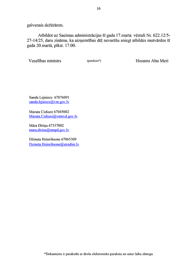 Bet ir iesniegts jauns deputātu jautājums. Deputāti Ramona Petraviča, Linda Liepiņa, Ilze Stobova, Viktorija Pleškāne un Edmunds Zivtiņš iesnieguši jautājumu veselības ministram Hosamam Abu Meri "Par sākotnējo solījumu par 15 līdz 20 % panākt zemākas zāļu cenas pacientiem un veiktās reformas iespaidu uz lētāko zāļu klāstu".