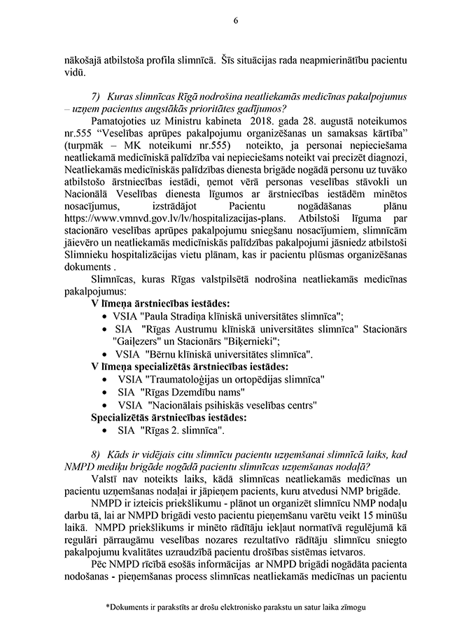 Deputātu Ramonas Petravičas, Lindas Liepiņas, Aināra Šlesera, Kristapa Krištopana un Ilzes Stobovas jautājums veselības ministram Hosamam Abu Meri "Par neatliekamo medicīnisko palīdzību". (Zālē troksnis.) Zivtiņa kungs, vai jūs interesētu, kas ar jūsu frakcijas iesniegto deputātu jautājumu notiek? (Dep. E. Zivtiņa starpsaucieni. Starpsaucieni.) Tātad, kolēģi, saņemtā rakstveida atbilde iesniedzējus neapmierina, bet mutvārdos papildjautājumus kolēģi uzdot nevēlas.