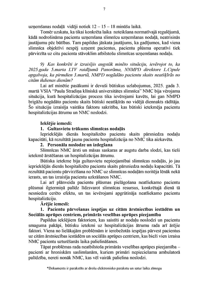 Pieprasījums tika nodots Izglītības un zinātnes ministrijai izskatīšanai un atbildes sniegšanai.