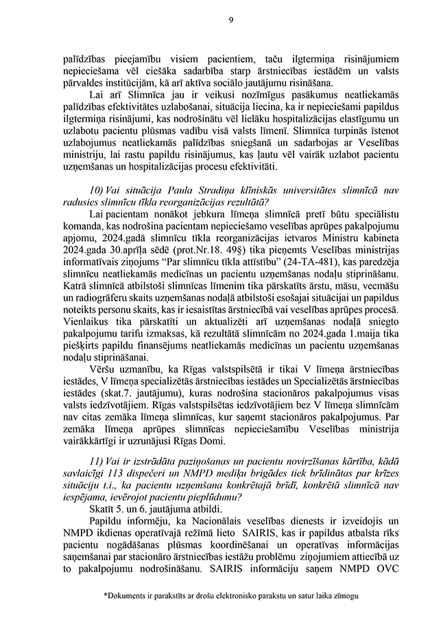 Sēdes vadītāja. Godātie kolēģi, es informēšu jūs par atbilžu sniegšanu uz deputātu jautājumiem, kas ir paredzēta šodien pulksten 17.00.