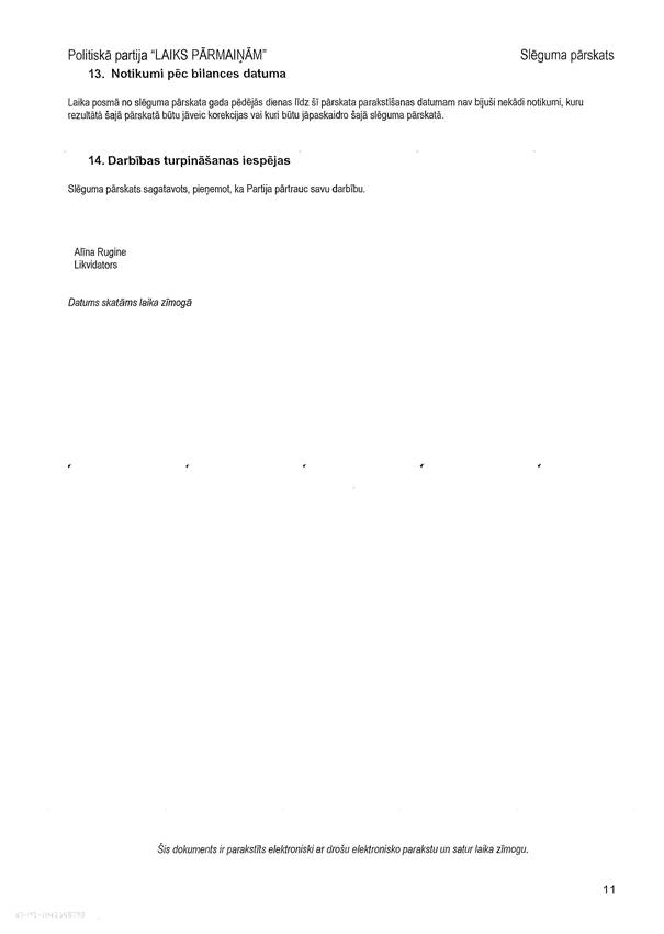 Partijas nosaukums: "LAIKS PĀRMAIŅĀM" (likvidēta 10.12.2024.)