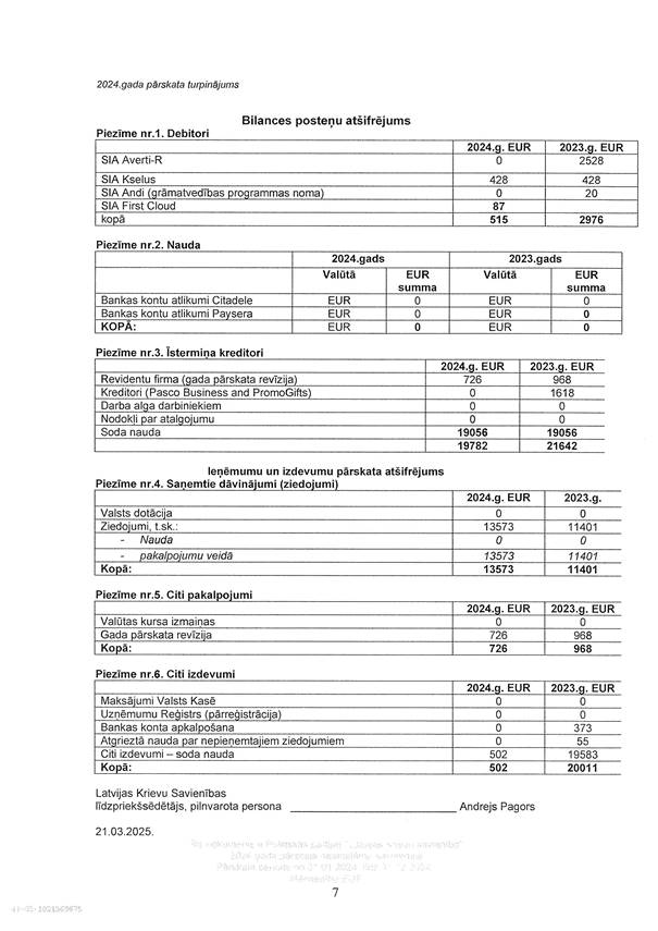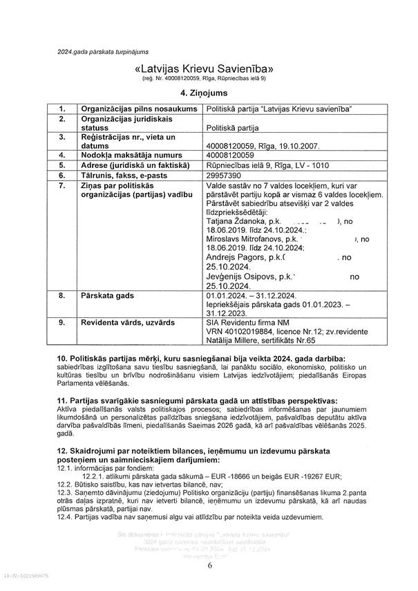 Politiskās partijas "Latvijas Krievu savienība", reģ. Nr. 40008120059, 2024. gada pārskats, EUR
