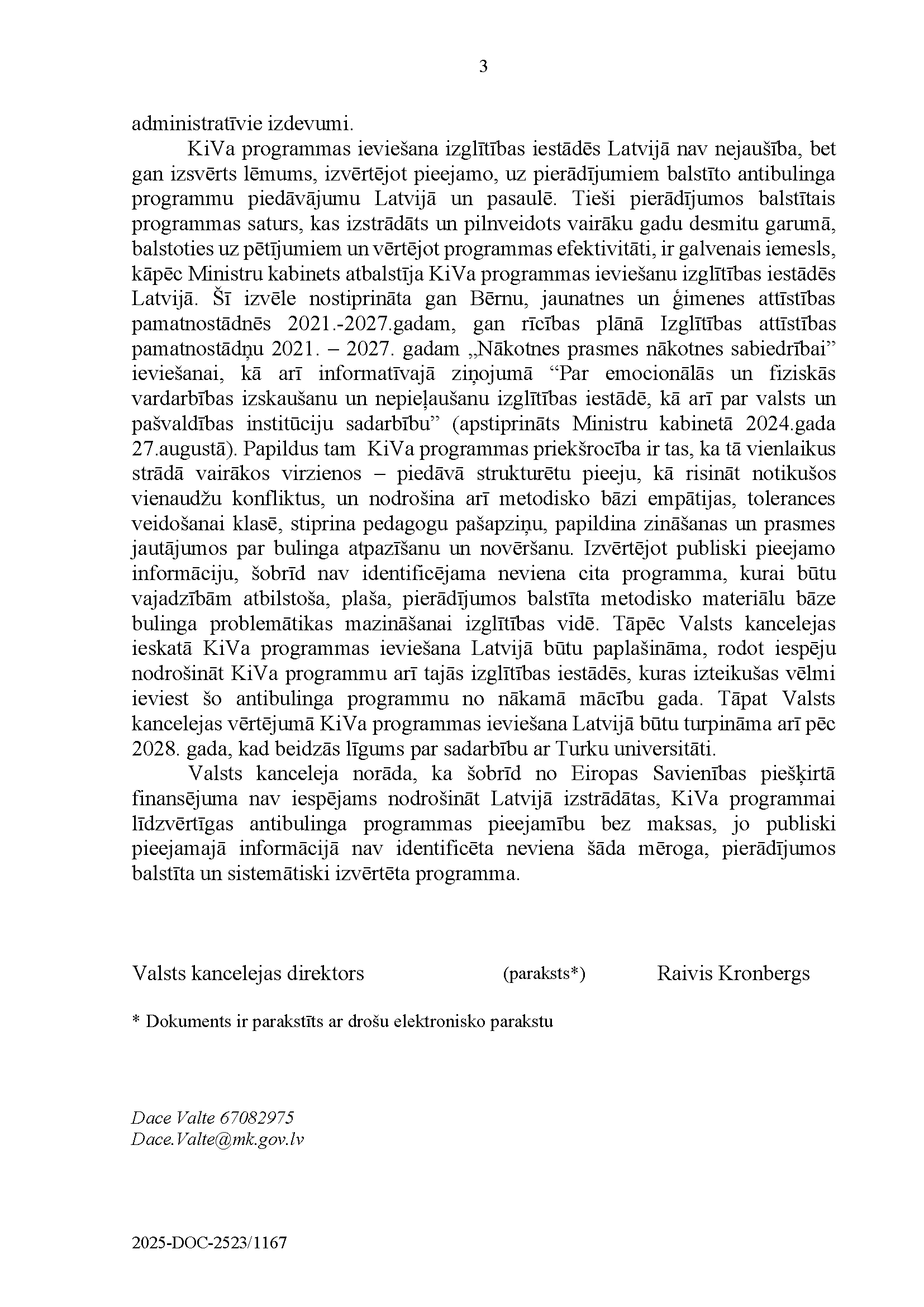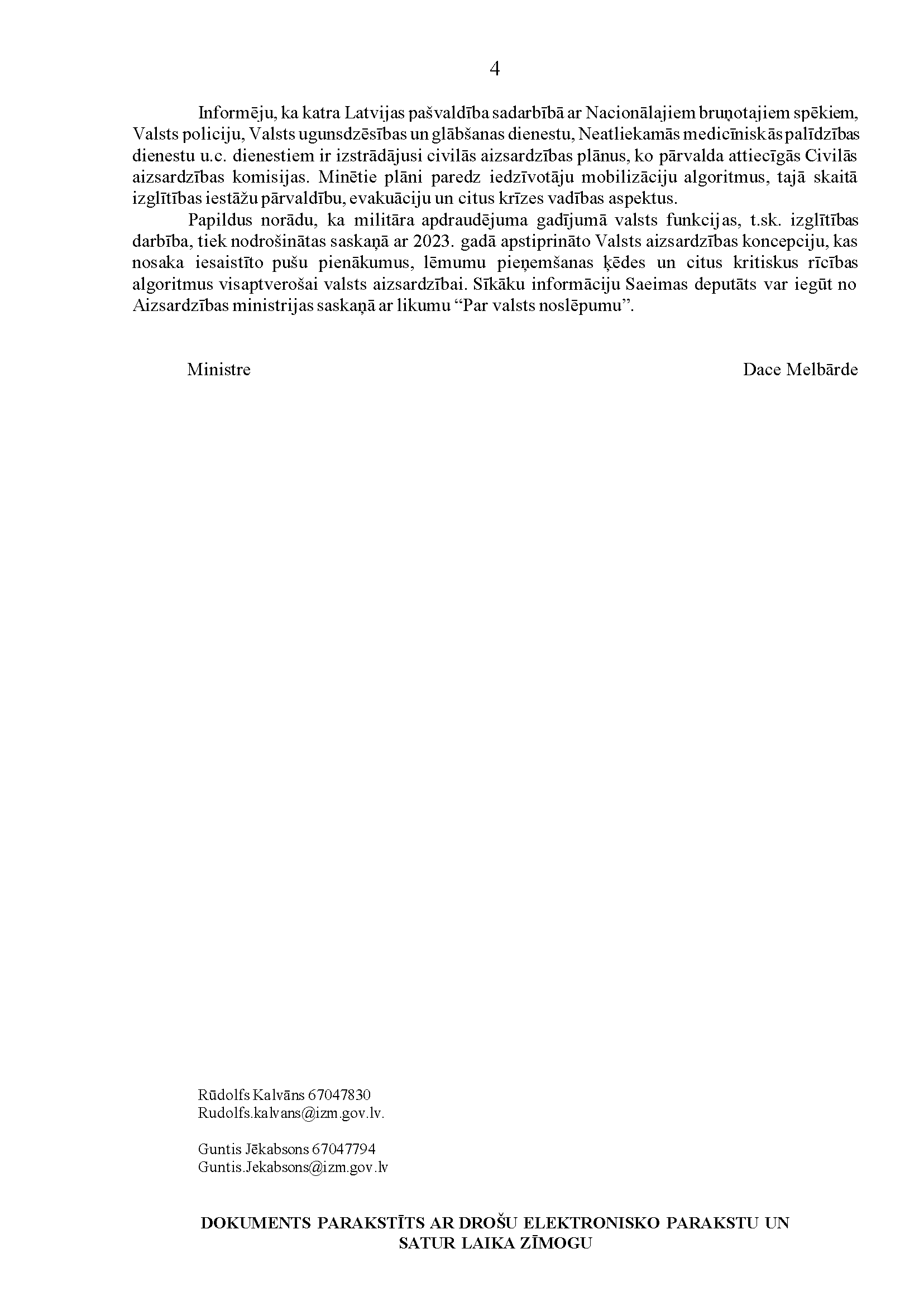 Bet tas jau nav viss. Šādu precedentu ir daudz, un tie ir dažādi, kur kaut kas nesanāk, un parasti tā atbildība tiek aizspēlēta. Vakar mēs redzējām precedentu, ka tiek meklēts vainīgais, kurš būs atbildīgs par šo pāli Daugavā. Gribējās jau skatīties uz Briškena kungu, bet viņš jau tika izmests no valdības par citiem pārkāpumiem. Tad, kad bija runa par pārmērīgiem tēriņiem valsts pārvaldē, tika vaļā no Kariņa kunga kā no ārlietu ministra. Arī "Skola 2030" ir pietiekami liela izgāšanās. Varētu meklēt jaunu atbildīgo, bet kā izglītības un zinātnes ministre no amata jau tika nomesta Čakšas kundze. Par visām problēmām ar digitālajām lietām un lēno reģionālo attīstību arī varētu meklēt atbildīgo, bet vienu Viedās administrācijas un reģionālās attīstības ministri – Bērziņas kundzi – Siliņas kundze jau arī nometa no amata. Nu tad tagad... es nezinu. Ja pārāk liela sabiedrības uzmanība tiks pievērsta šai Nacionālās drošības koncepcijas neizpildei, ļoti iespējams, ka, Lāces kundze, būs jūsu kārta. Jā, Loginas kundze jau arī tika atbrīvota no amata, bet varbūt tad uz jums to atbildību aizfutbolēs tālāk. Tas ir tas stils, ar ko mēs sastopamies.