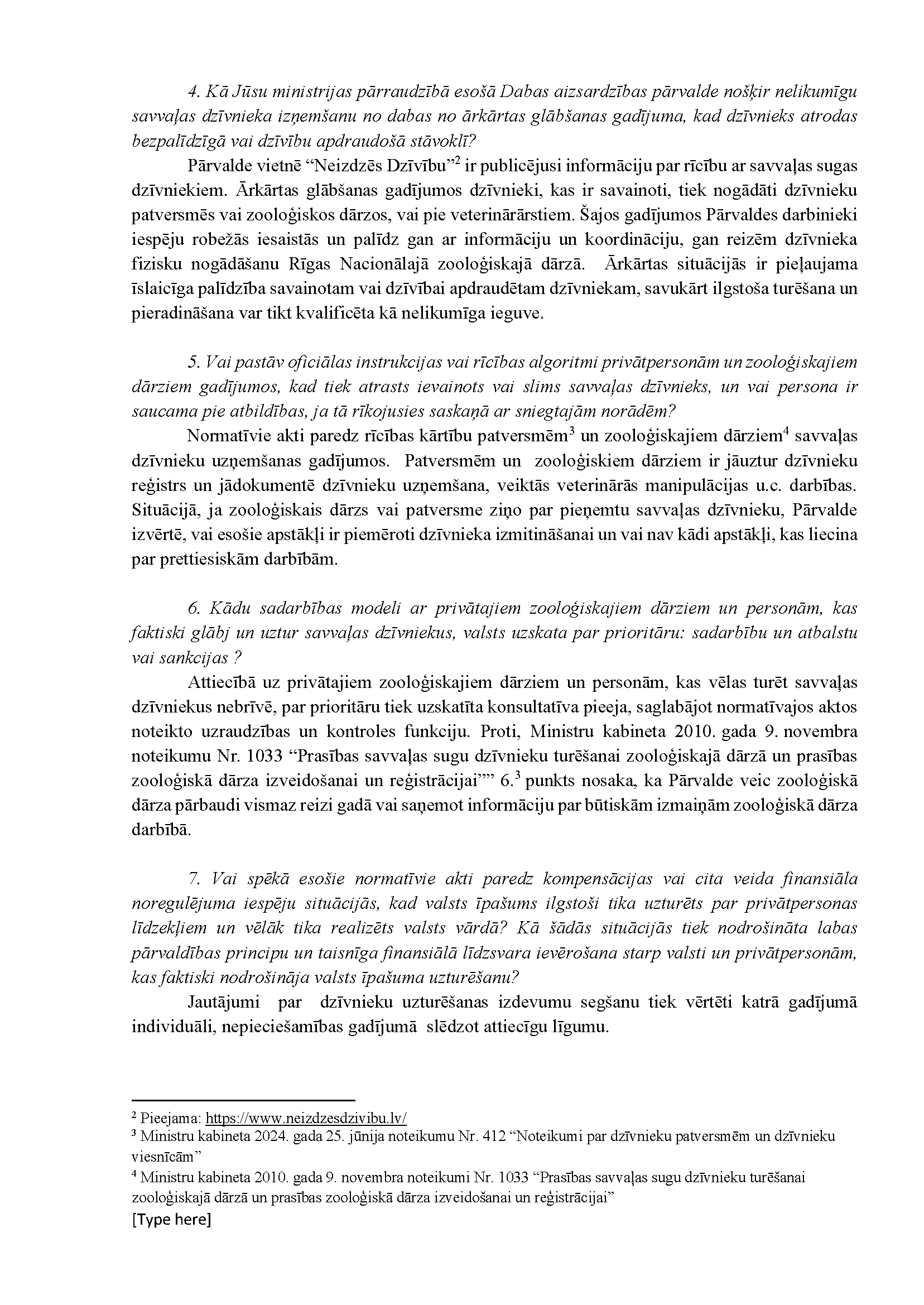 Ņemot vērā, ka deputātu Jura Viļuma, Česlava Batņas, Andreja Svilāna, Lindas Matisones un Edgara Tavara iesniegtais deputātu jautājums tieslietu ministrei ir noformēts latgaliešu rakstu valodā un tikai jautājuma nosaukums ir dublēts literārajā latviešu valodā, ir jāsaka – tas var radīt atšķirīgus viedokļus par valsts valodas lietojumu rakstiskajā oficiālajā saziņā un var radīt situāciju, ka divu likumu normu interpretācija var būt atšķirīga.