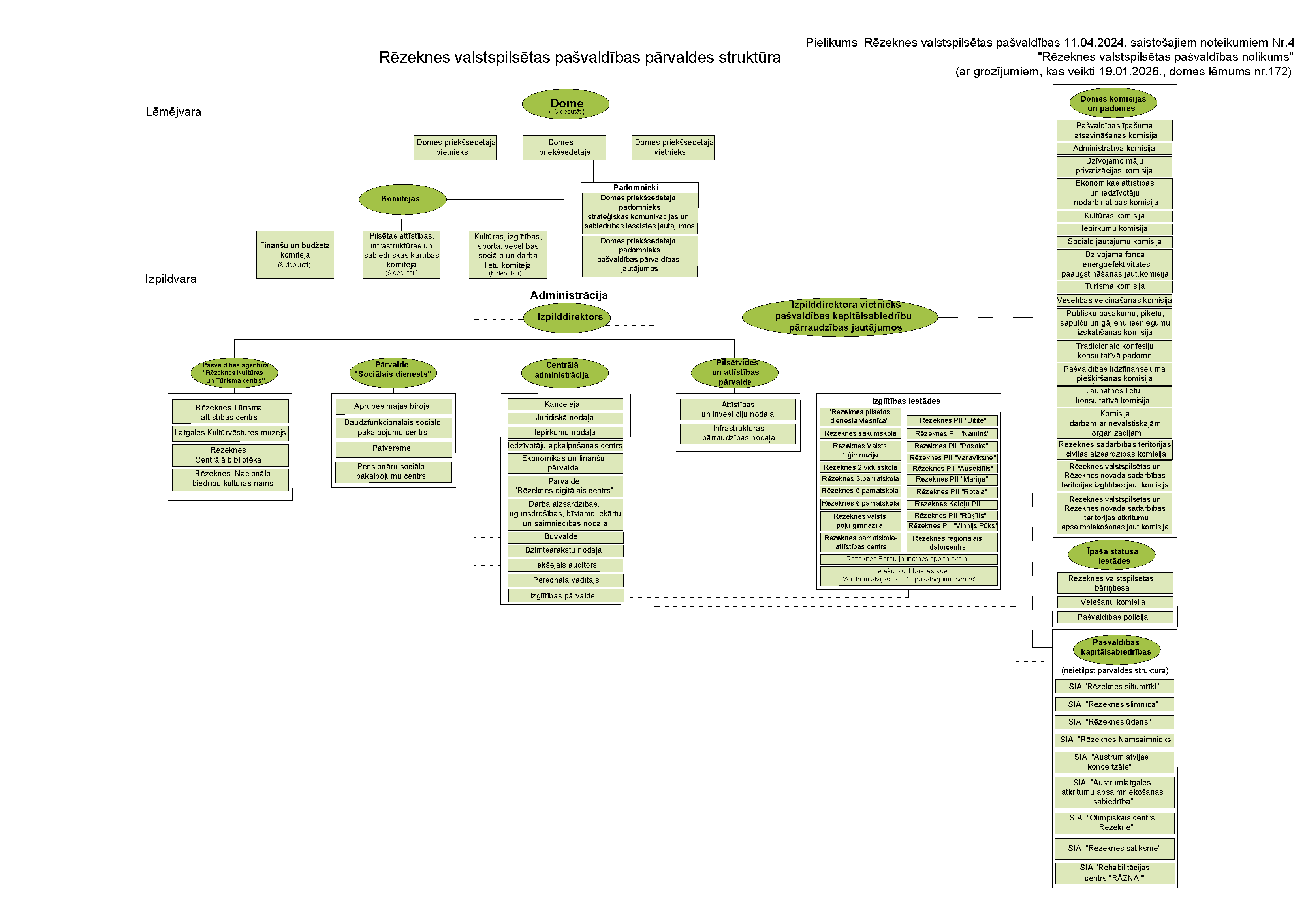 4. Izteikt pielikumu "Rēzeknes valstspilsētas pašvaldības pārvaldes struktūra" jaunā redakcijā saskaņā ar šo saistošo noteikumu pielikumu.