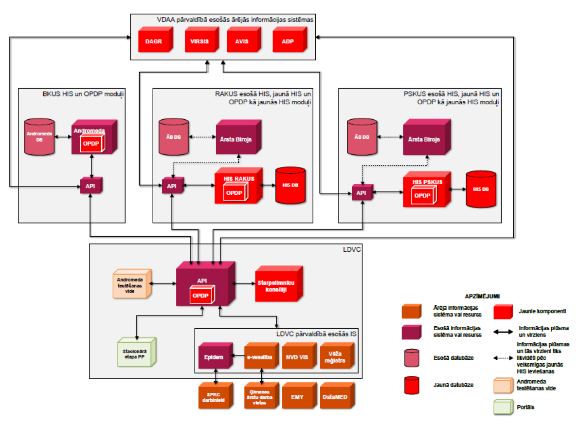 IS Andromeda ar papildinātu funkcionalitāti kalpos kā onkoloģisko pacientu datu apmaiņas platforma (OPDP). Lai nodrošinātu OPDP funkcionalitāti, plānotas integrācijas ar DAGR u. c. IS atbilstoši KUS likumdošanā pieejamajiem datiem. VIRSIS tiks izmantots, lai nodrošinātu piekļuves tiesības DAGR datu kopām. Latvijas atvērto datu portāls (ADP) tiks izmantots, lai publicētu OPDP atvērto datu kopas. 2. Prognozētās uzturēšanas izmaksas – 20 % no kapitālieguldījumiem programmatūras izstrādē, t. i., 2 071 353,31 x 0,20 = 414 270,66 euro/gadā. Ņemot vērā, ka projekts noslēdzas 2026. gada 31. maijā, uzturēšanas izmaksas pa gadiem ir plānotas proporcionāli faktiskajam uzturēšanas periodam: 2026. gadā – 207 135,33 EUR; 2027.–2030. gadā – 414 270,66 EUR gadā; 2031. gadā – 207 135,33 EUR. Prognozētās uzturēšanas izmaksas 20 % apmērā no kapitālieguldījumiem programmatūras izstrādē ir indikatīvs aprēķins, kas balstīts uz līdzšinējo praksi valsts pārvaldē līdzīgu informācijas sistēmu uzturēšanā un atspoguļo kopējās sistēmas ekspluatācijas izmaksas, nevis atsevišķa projekta personāla atlīdzību pēc projekta noslēguma. Norādītajās uzturēšanas izmaksās ietilpst: - pēc projekta noslēguma informācijas sistēmu tehniskā uzturēšana un administrēšana, tai skaitā sistēmu darbības uzraudzība, konfigurāciju pārvaldība un darbības nepārtrauktības nodrošināšana tiks nodrošināta, izmantojot esošos iekšējos Slimnīcu un partneru IT resursus, atbilstoši to kompetencei un pienākumiem. - iestādes pamatdarbības ietvaros nodarbinātā IT personāla darba laika izmaksu proporcija, kas saistīta ar sistēmas uzturēšanu, administrēšanu un darbības nepārtrauktības nodrošināšanu (piemēram, sistēmas administratoru, lietojumprogrammu uzturētāju, datubāzu administratoru un kiberdrošības speciālistu funkcijas); - regulāri programmatūras atjauninājumi, drošības ielāpu ieviešana un versiju uzturēšana, lai nodrošinātu sistēmu drošu, stabilu un normatīvajām prasībām atbilstošu darbību; - kritiski sistēmu pielāgojumi, kas saistīti ar normatīvo aktu izmaiņām, kiberdrošības prasību izpildi vai savietojamības nodrošināšanu ar citām valsts informācijas sistēmām; - skaitļošanas un infrastruktūras resursu izmaksas, tostarp serveru jauda, datu glabāšana, rezerves kopēšana un un tehniskie risinājumi sistēmu pieejamības un darbībasa nepārtrauktības nodrošināšanai; - incidentu un traucējumu novēršana, tai skaitā sistēmu darbības atjaunošana un preventīvie pasākumi, lai mazinātu dīkstāves riskus Līdz ar to uzturēšanas izmaksu aprēķins atspoguļo organizatorisko un tehnisko resursu noslodzi sistēmas ekspluatācijas laikā, nevis jaunu vai projektu finansētu atalgojuma saistību rašanos pēc projekta pabeigšanas. Katrs no projekta partneriem (RAKUS, PSKUS, BKUS, SPKC) nodrošina savā pārziņā esošo informācijas sistēmu un to pielāgojumu uzturēšanu, LDVC nodrošina datu apmaiņas platformas uzturēšanu. Uzturēšana ietver gan infrastruktūras uzturēšanu, gan informācijas sistēmu uzturēšanu. Iesaistīto darbinieku amata vietas atalgojuma daļu (izteiktu procentos) paredzēts attiecināt uz projekta ietvaros izveidoto risinājumu uzturēšanu. Iekļauts papildu finansējuma pieprasījums 8 102,12 EUR apmērā no valsts budžeta, lai segtu radušās reversā PVN izmaksas par saņemtajiem pakalpojumiem. 3. Pamatojoties uz Ministru kabineta 2022. gada 6. jūlija rīkojumā Nr. 493 "Par Veselības aprūpes pakalpojumu uzlabošanas plānu onkoloģijas jomā 2022.–2024. gadam" norādīto, ka lielākā onkoloģijas pacientu plūsma ir RAKUS Latvijas Onkoloģijas centrā (tajā katru gadu ārstējas apmēram 80 % no visiem onkoloģijas pacientiem), RAKUS ir noteikta par jaunā Vēža centra veidotāju. Saskaņā ar Ministru kabineta 2022. gada 6. decembra noteikumiem Nr. 760 "Eiropas Savienības Atveseļošanas un noturības mehānisma plāna 4.1.1.r. reformas "Uz cilvēku centrētas, visaptverošas, integrētas veselības aprūpes sistēmas ilgtspēja un noturība" atskaites punkta "Nodrošināt metodisko vadību onkoloģijas jomā" īstenošanas noteikumi" RAKUS ir noteikta par projekta īstenotāju reformas atskaites punkta mērķu īstenošanai onkoloģijas jomā, partnerībā ar projekta īstenošanas partneriem PSKUS un BKUS izveidojot visu Latvijā esošo klīnisko universitāšu slimnīcu partnerību. Līdz ar to apliecinām, ka projekta ietvaros netiks sniegts atbalsts komercdarbībai, bet tiks īstenots valsts deleģētais uzdevums onkoloģijas jomā. Veselības ministrija atbilstoši tās nolikumā noteiktajām funkcijām izstrādā veselības politiku, kā arī organizē un koordinē veselības politikas īstenošanu. Veselības nozares valsts informācijas sistēmas ir līdzeklis, lai nodrošinātu sekmīgu minēto funkciju izpildi onkoloģijas jomā. Projekts ir daļa no valsts veselības aprūpes digitalizācijas procesa, kura mērķis ir izveidot veselības nozares informācijas sistēmu e-veselības IS (tās izstrāde jau ir uzsākta, šobrīd īstenojot dažādas vienotas valsts veselības informācijas sistēmas komponentes, piemēram, elektroniskās veselības kartes un integrācijas platformas informācijas sistēmas izveidi), un daļa no valsts integrācijas platformas, un tas tiek īstenots kā daļa no veselības nozares sabiedrības veselības portāla izveides procesa. 4. Pēc projekta beigām paredzēta datu bezmaksas nodošana uz e-veselības IS atbilstoši e-veselības IS gatavībai un iespējām. Tādējādi tiktu nodrošināta onkoloģijas pacientu datu bezmaksas pieejamība ikvienai ārstniecības iestādei, kam LDVC būs piešķīris piekļuvi e-veselības IS ar atbilstošām lietotāja piekļuves tiesībām. Valsts veselības aprūpes jomā izveidotā e-veselības IS ir strukturizēts inform