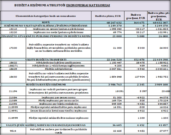 Ieņēmumu palielinājums vai samazinājums budžeta plānā ir fiksēts šajā tabulā uzskaitītajos ekonomiskās klasifikācijas kodos: