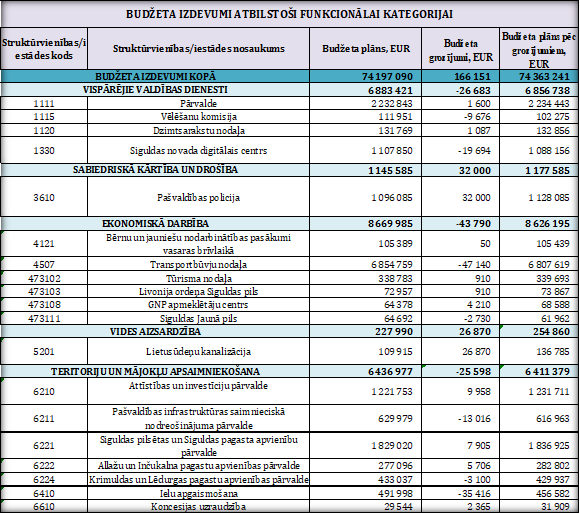 Budžeta izdevumu daļā palielinājums vai samazinājums budžeta plānā ir fiksēts šajā tabulā uzskaitītajās struktūrvienībās atbilstoši to funkcionālajām kategorijām: