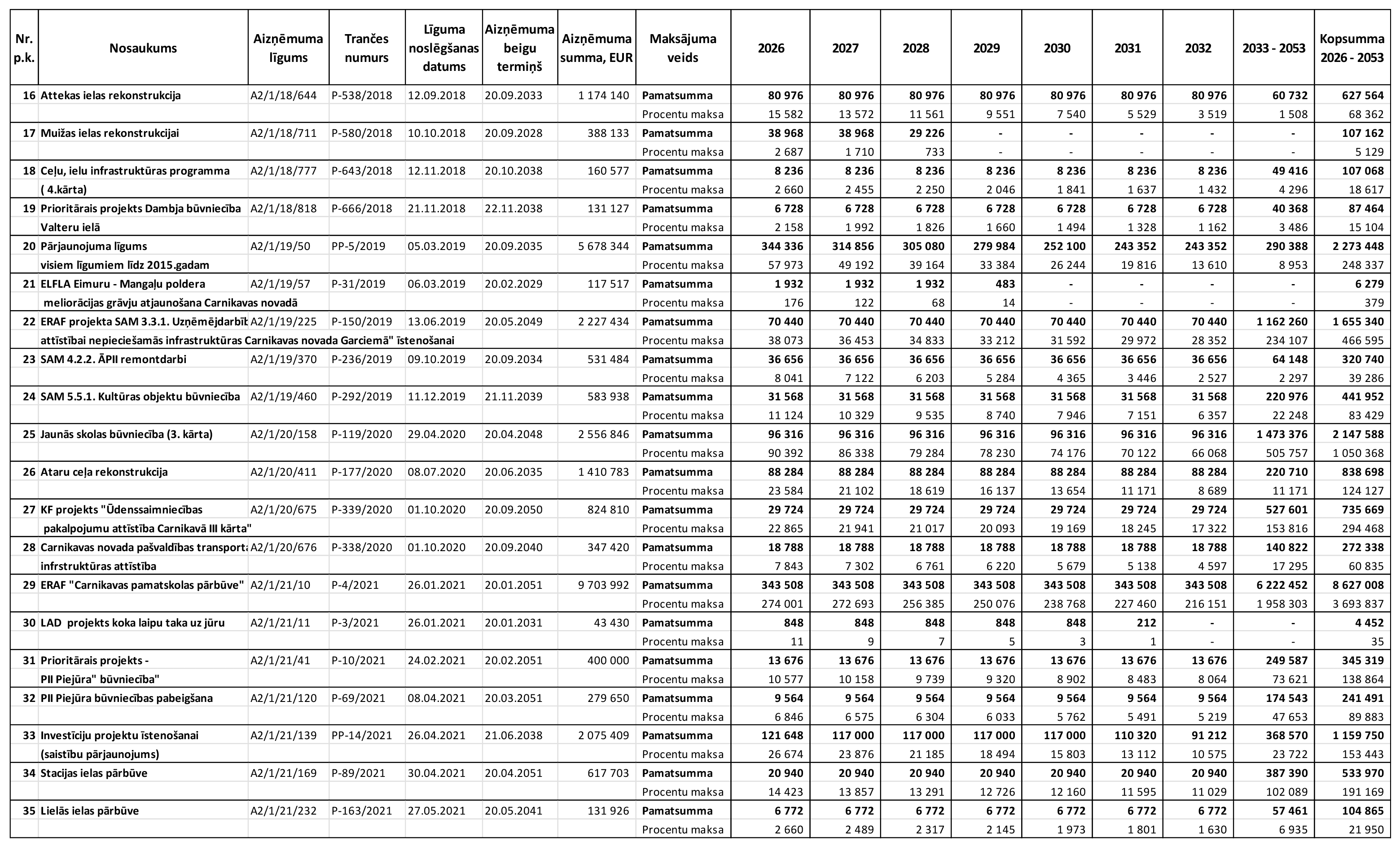 7.2. Centrālās pārvaldes Grāmatvedības nodaļa nodrošina kredītu pamatsummas un procentu samaksu noteiktajos termiņos un apmēros 2026. gadā, saskaņā ar noslēgtajiem finanšu saistību līgumiem;