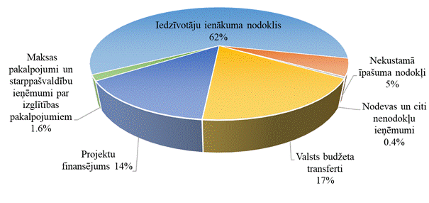 Budžeta ieņēmumi 2026. gadā plānoti 67 459 867 euro, ko veido nodokļu un nenodokļu ieņēmumi (nodevas, naudas sodi un sankcijas), ieņēmumi no pašvaldības īpašumu pārdošanas, iestāžu sniegtajiem maksas pakalpojumiem un citiem pašu ieņēmumiem, kā arī transferti (mērķdotācijas, kas tiek saņemtas no ministrijām un pašvaldībām un paredzētas galvenokārt pedagogu darba samaksai, kā arī ES fondu finansēto projektu īstenošanai un pašvaldību maksājumiem par izglītības pakalpojumiem).