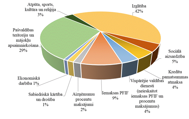 • pašvaldības un domes pārvalde 2 251 986 euro;