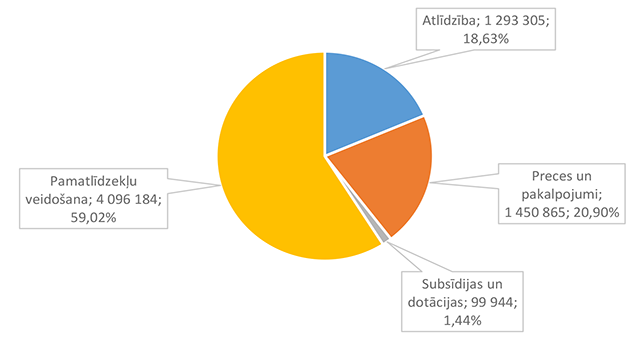 Saskaņā ar ziedojumu un dāvinājumu noteiktiem mērķiem to izlietojums pa ekonomiskās klasifikācijas kodiem atspoguļots 49. attēlā.