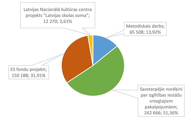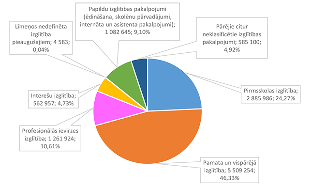 Lielākais īpatsvars ir savstarpējiem norēķiniem par izglītības iestāžu sniegtajiem pakalpojumiem 242 666 EUR, kas ir 51,56 % no pārējiem citur neklasificētiem izglītības pakalpojumiem 2026. gadam plānotā finansējuma.