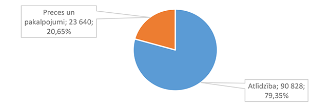 Lielākais īpatsvars ir atlīdzības nodrošināšanai 90 828 EUR, kas ir 79,35 % no Izglītības pārvaldei 2026. gada plānotā finansējuma.