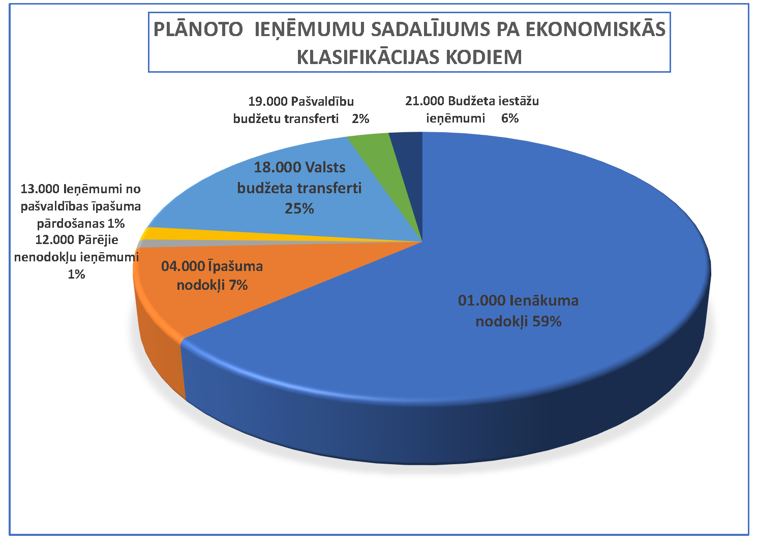 Pašvaldības pamatbudžeta konsolidēto ieņēmumu sadaļu atspoguļo saistošo noteikumu 1. pielikums un grafiski tas tiek attēlots paskaidrojuma raksta 1. attēlā. Ieņēmumu sadaļu veido sekojoši lielāko ieņēmumu veidi: