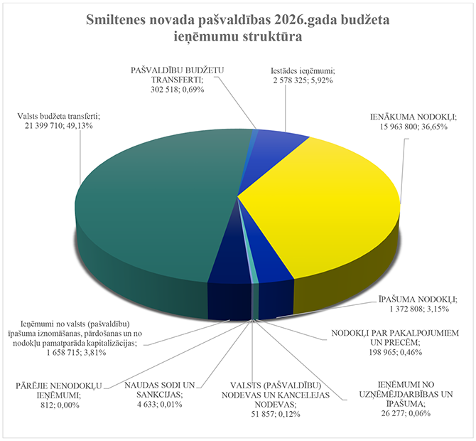 Smiltenes novada pašvaldības pamatbudžeta ieņēmumi 2026. gadam