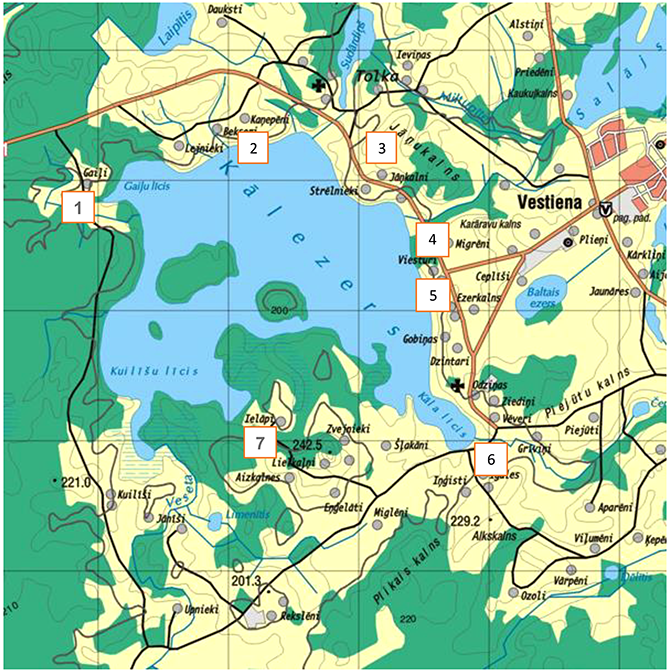 1. Atpūtas vietās, informācija www.kals.lv un uz stendiem Kālezera krastos (uz kartes ar numuriem atzīmētas informatīvo stendu atrašanās vietas);