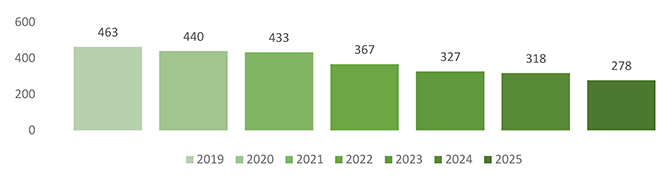 Tabula nr. 3. Ķekavas novadā deklarēto bērnu skaits, 2019.–2025.