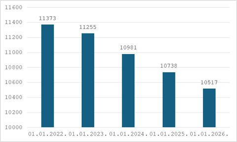 1. attēls Iedzīvotāju skaita izmaiņas Līvānu novadā no 01.01.2022.–01.01.2026. gadam (Pilsonības un migrācijas lietu pārvaldes dati)