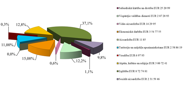 - sociālā aizsardzība 2 315 946 euro (9,84 %).