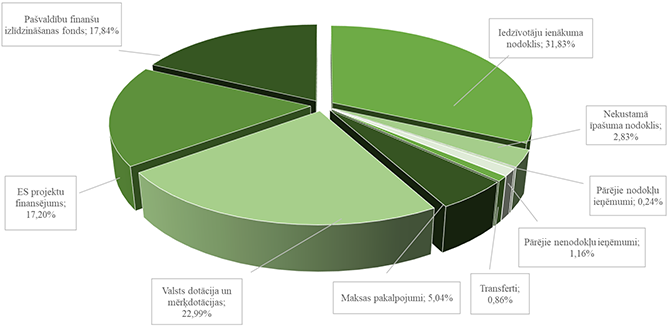 Eiropas Savienības projektu finansējums šajā gadā sastāda 17.20 % no visiem pašvaldības plānotajiem ieņēmumiem, kas salīdzinot ar 2025. gada budžetu ir par 19.05 % jeb 1 380 785 euro mazāk.