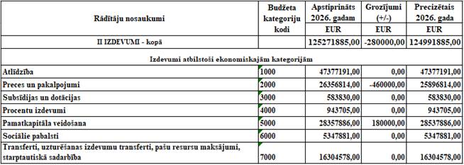 Izdevumi samazināti par EUR 280 000