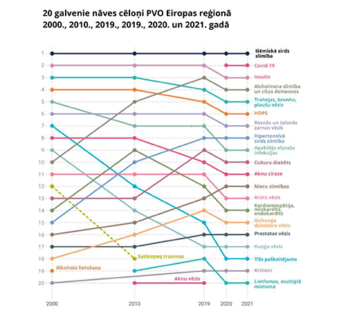 29 World Health organization European Region, European health report 2024 "Keeping health high on the agenda". Main causes of death, 113 lpp.
