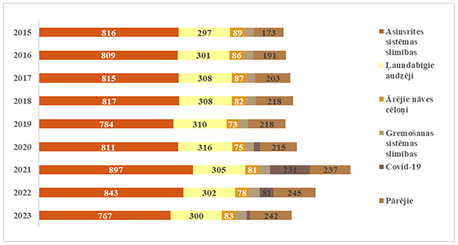 3 Slimību profilakses un kontroles centra Veselības statistikas datu bāze, 2015-2023